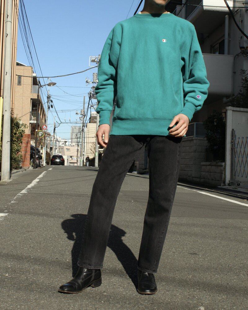 Champions reverse weave and pullover sweatshirts from the 1990s. A plain one-point type with a beautiful blue-green color that catches your eye. It is a large size silhouette with a moderate amount of space. It is in a good condition when viewed subjectively with a solid texture remaining. Since it is an old product, it rarely deteriorates over time. Please check the photos and understand the characteristics of Vintage before purchasing.