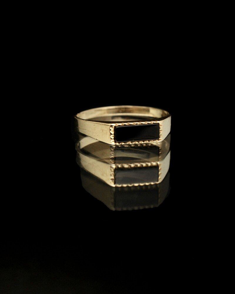 British made signet ring. It is the only ring that is allowed to be worn among British gentlemen who wear good things that can be used for a long time with as little waste as possible. The elegant look of the top design with onyx arranged in a rectangular narrow silhouette. It is a ring with a minimalist impression that you can not easily find when you look for it. 375-9ct gold engraved, 1984 London office hallmark. Please check the condition in the photo and purchase after acknowledging the characteristics of vinteg.