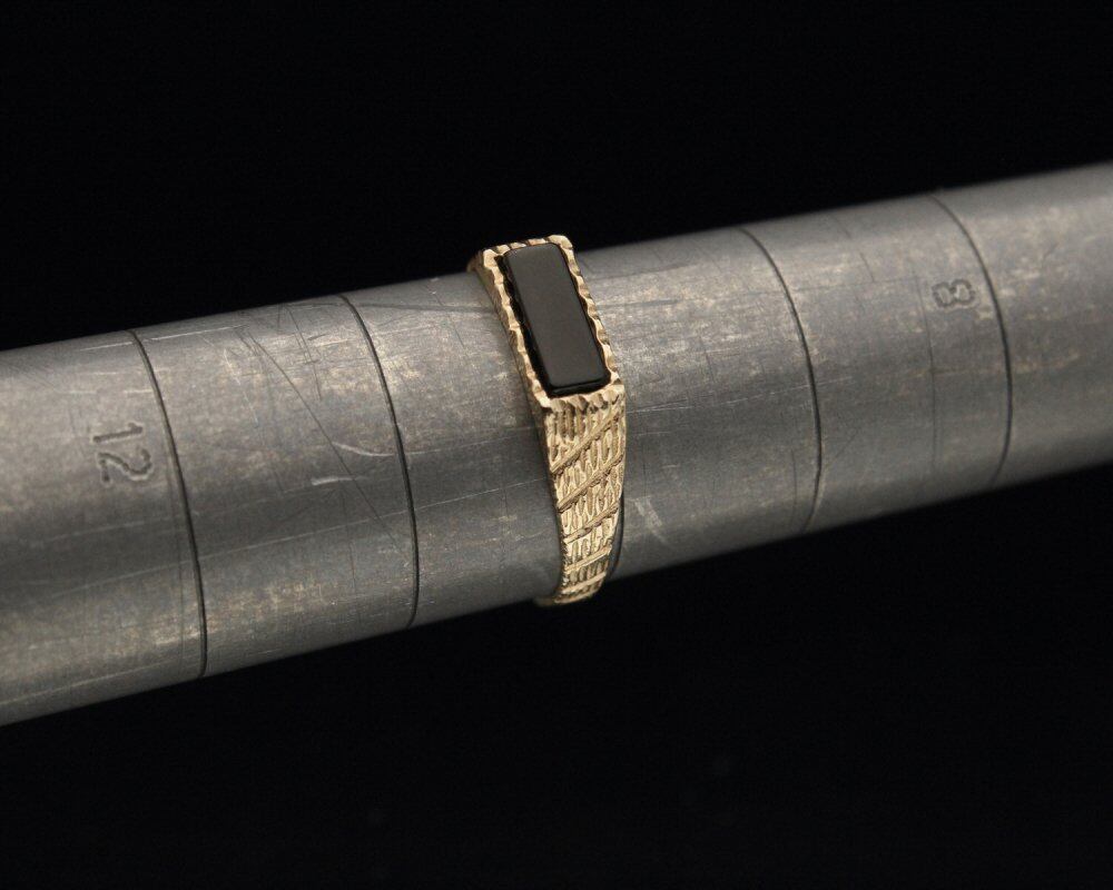 British made signet ring. It is the only ring that is allowed to be worn among British gentlemen who wear good things that can be used for a long time with as little waste as possible. The elegant look of the top design with onyx arranged in a rectangular narrow silhouette. It is a ring with a minimalist impression that you can not easily find when you look for it. Engraved with 375-9ct gold, Hallmark of the 1987 London office. Please check the condition in the photo and purchase after acknowledging the characteristics of vinteg.