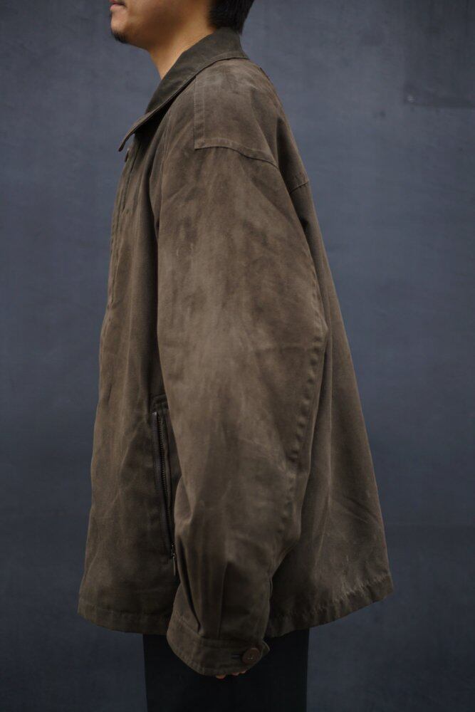 A big silhouette jacket with a unique slimy textured faux suede fabric.
