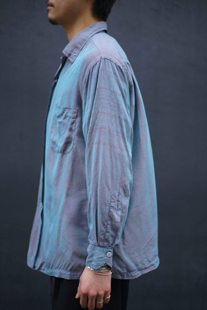 Although there is no notation, silk fabric is used for a light texture that does not feel heavy, and the characteristic coloring that the red is driven into the weft of the blue body is eye-catching.