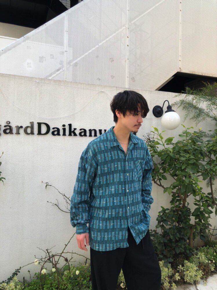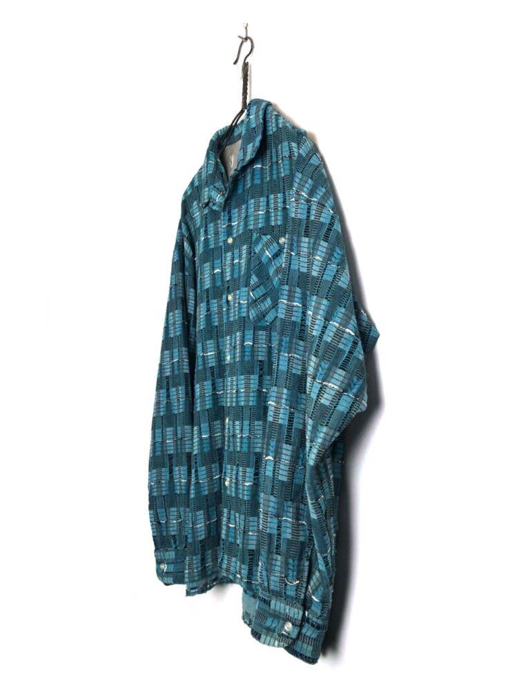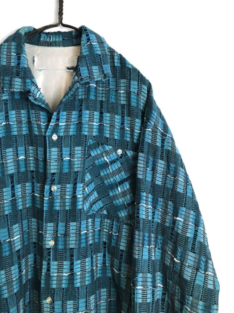 80s open color shirt Vintage shirt made of woven fabric with a unique three-dimensional texture. A turquoise-based color that suits spring.