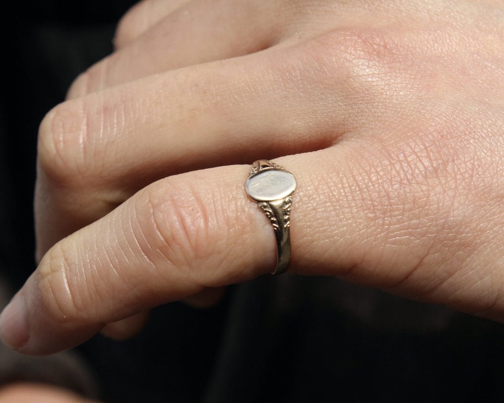Probably a signet ring from the 1930s. The simple oval top with a big pinky ring has a minimalist taste, and the Art Deco work is also casually nice. 10Kt gold engraved by Ostby Barton, an American jeweler founded at the end of the 19th century. After the founder died on the Titanic, he continued to make jewelry until the 1950s, but it is a popular manufacturer among the high quality vintage jewelry. Please check the condition in the photo and purchase after acknowledging the characteristics of vinteg.