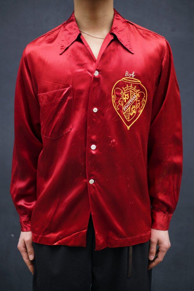 Around the 1940s, it is a rayon satin club shirt made by DESMONDS.