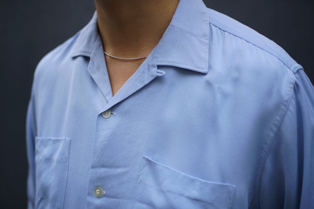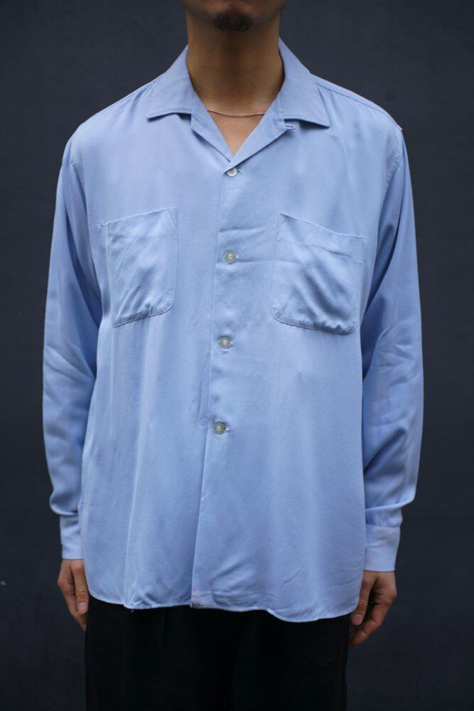Around the 1960s, this is a Wings rayon gabardine open collar shirt.