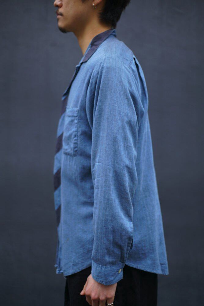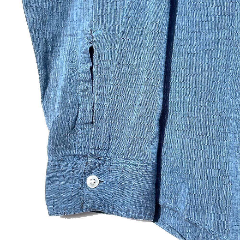 A cotton fabric with a soft and natural texture is used, and the chambray-like coloring with black is driven into the weft of the blue body is characteristic.