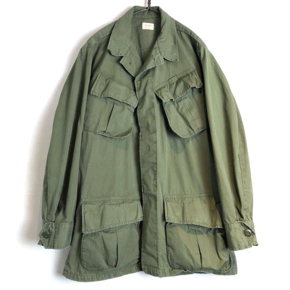 60s U.S. Army Fatigue Jacket Small-Regular size that can be worn with a moderately loose silhouette with a ripstop cotton texture that gives off a feeling of olives that have faded over time.