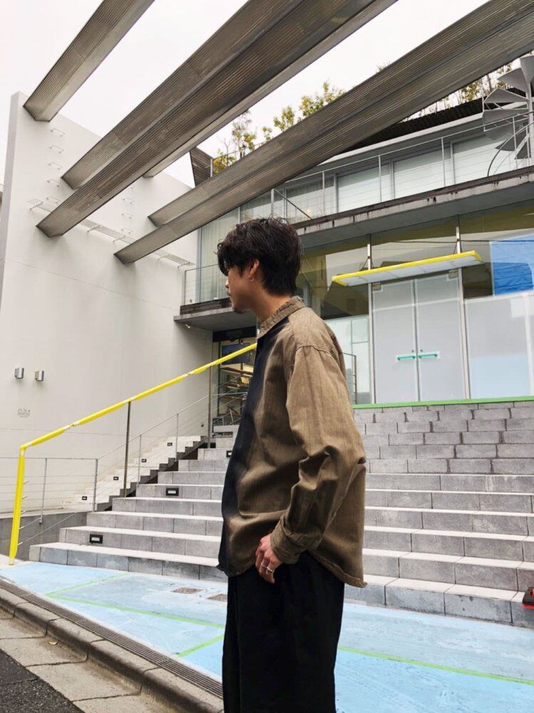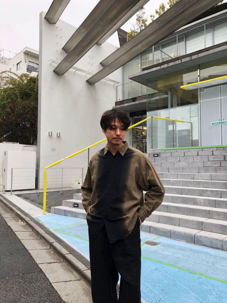 90s long sleeve shirt Black x grayish khaki gradation stripe is one of the masculine atmosphere. Cotton x rayon fabric has a nice texture and is smooth to the touch. A relaxed and relaxed good silhouette shirt.