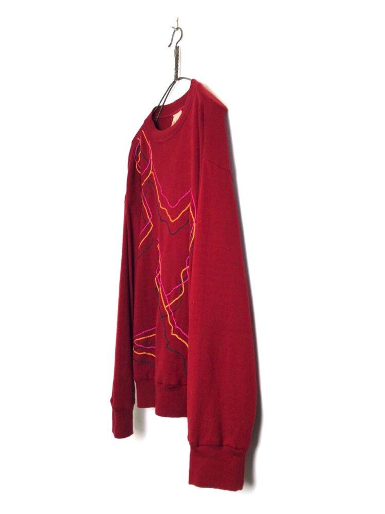 Based on a vintage cotton knit, this is a line embroidery of a scene from Quentin Tarantinos masterpiece movie Pulp Fiction.