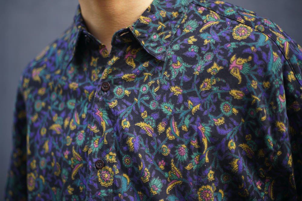 The suspicious floral pattern printed on the dark tone body and the dull coloring unique to vintage give a sexy look.