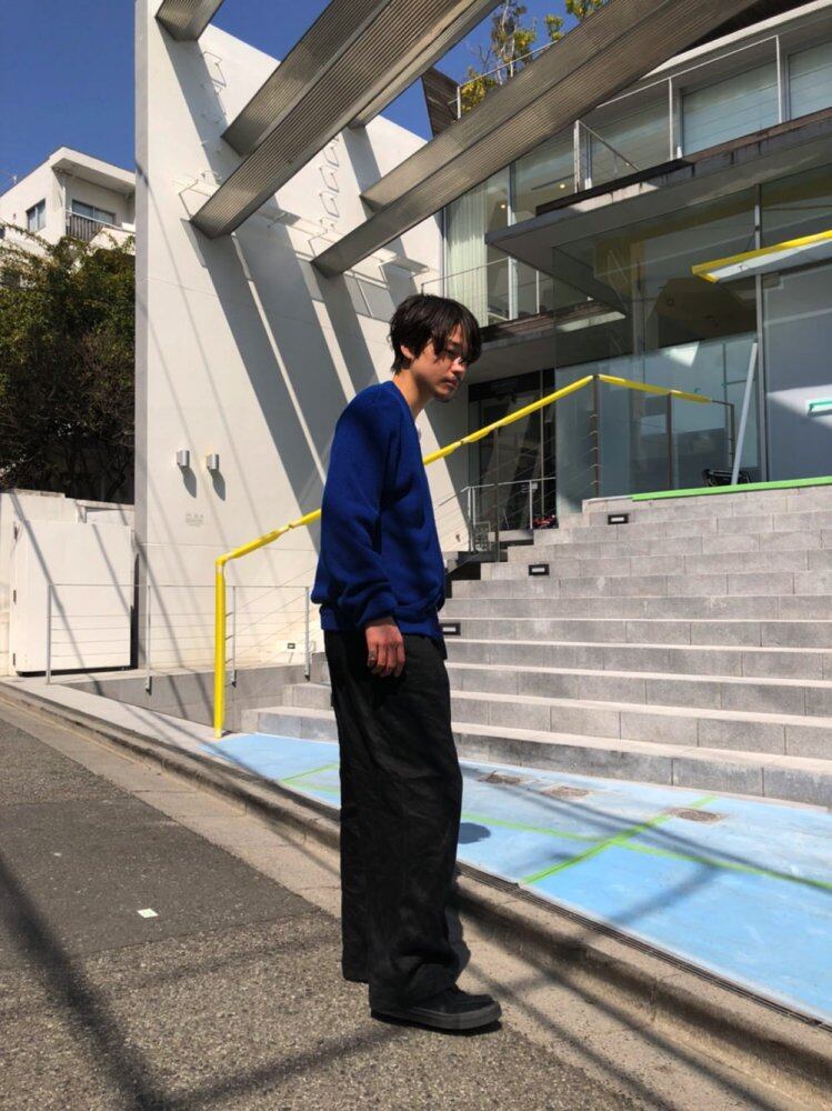 A 100% acrylic material that is thin, light and smooth to the touch, and is a knit for spring. A cardigan that is easy to use as an inner or as a single piece with a good silhouette that has a moderate amount of space.
