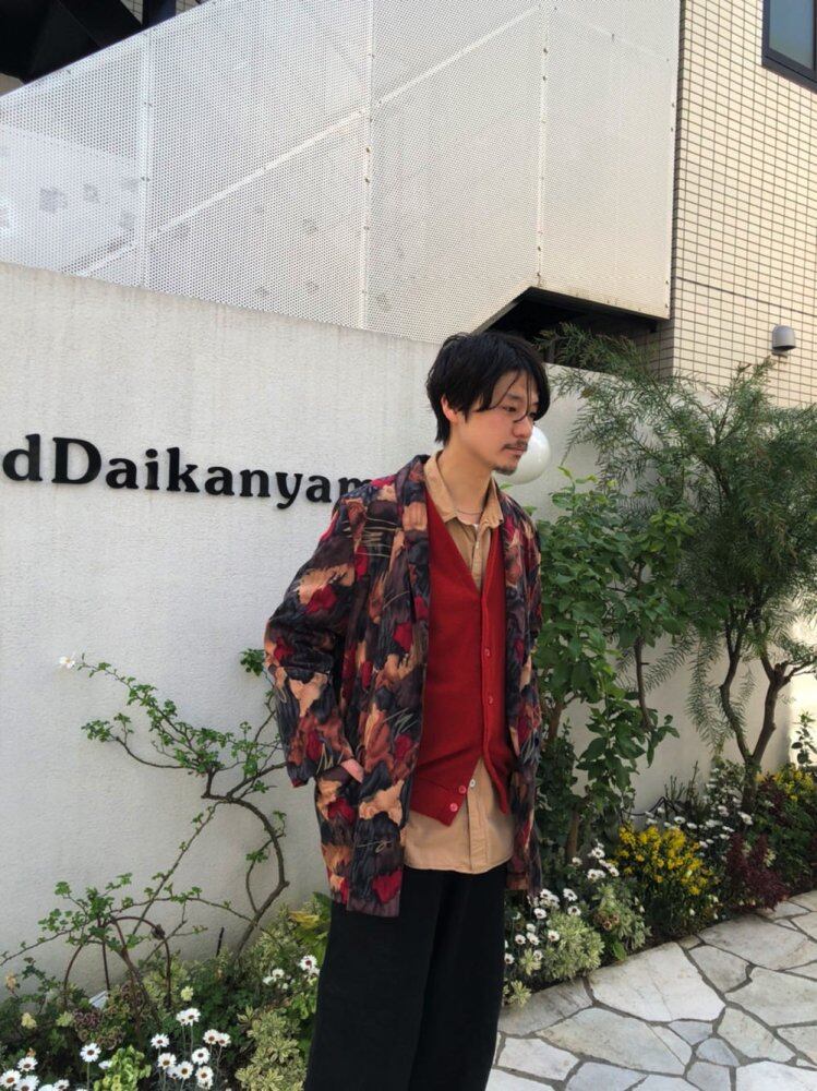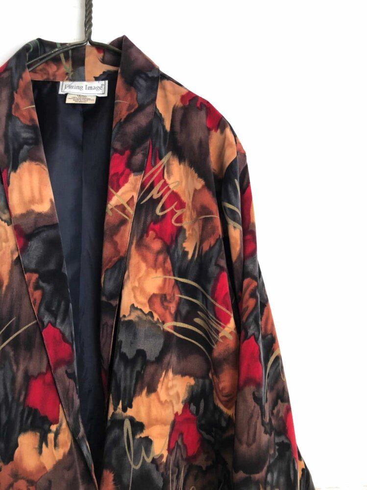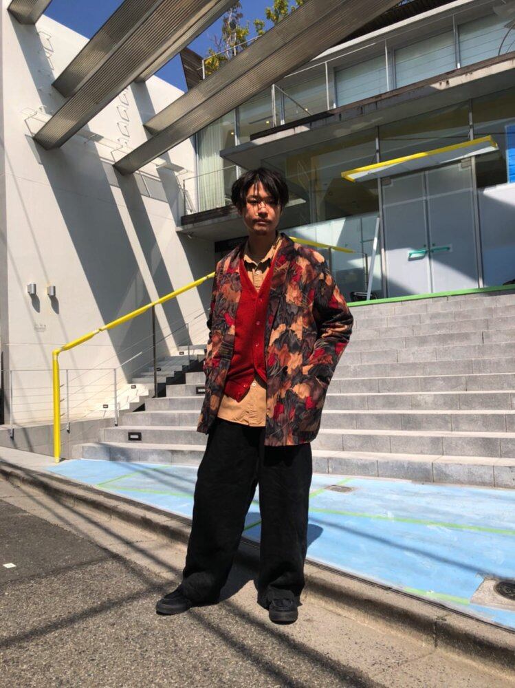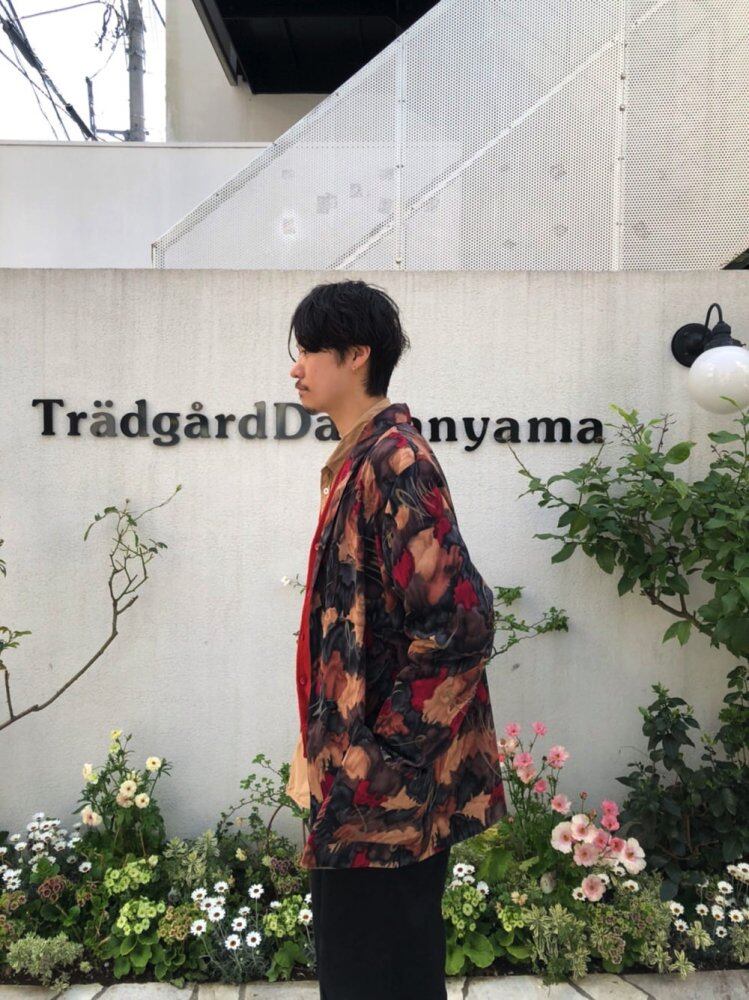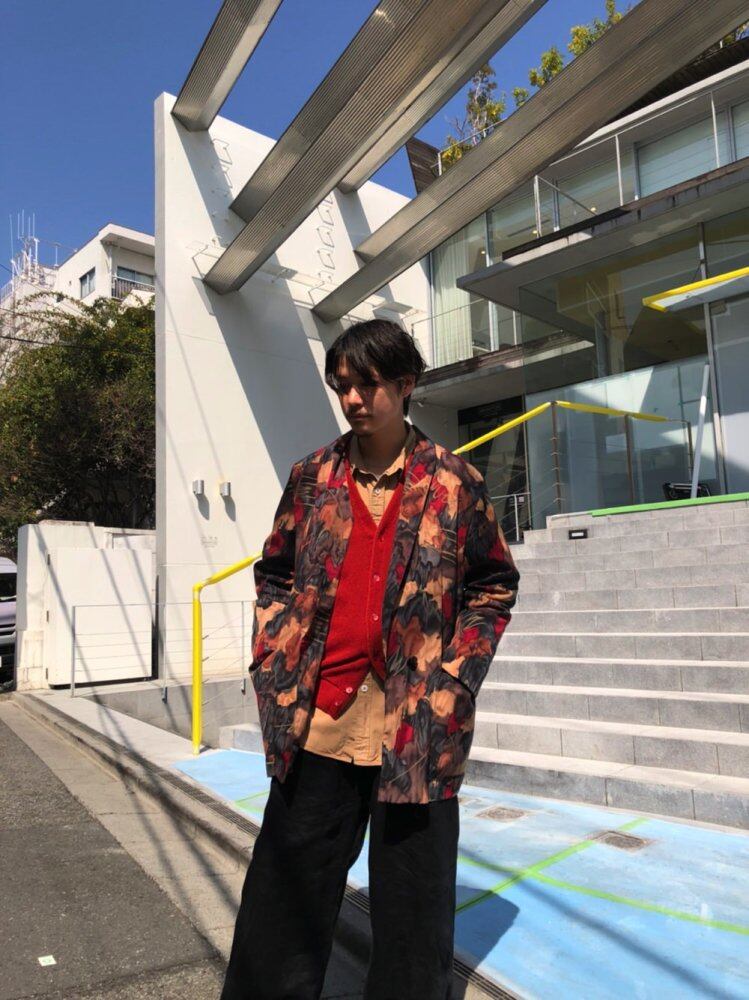 80s art jacket The abstract abstract pattern has a very nice atmosphere, and the overall pattern is calm, so it gives an adult-like impression. A light polyester jacket that can be worn like a shirt. With a loose over-silhouette. A feeling of size like now
