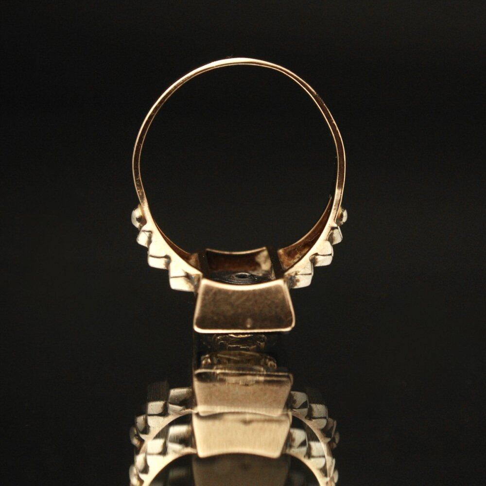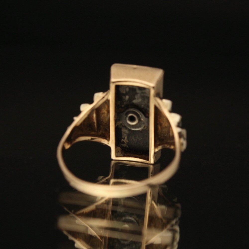 Vintage class ring around the 1920s. The contrast between gold and onyx is beautiful, and the remnants of the signet ring can be felt. It is a delicate, simple yet horned mannish silhouette design that is typical of this age. The school name is unknown, but the lion and handshake mark is an old symbol of unity, and is also a symbol often used by Masonic, including the lamp and star marks. College rings of this age are mostly made of silver or brass due to the Great Depression, and gold is rare. Please check the condition with the engraved photo of 10kt gold and purchase it after acknowledging the characteristics of vinteg.