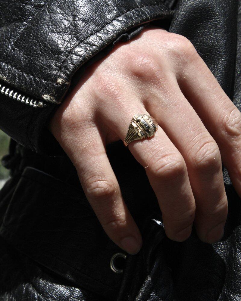 1945 vintage class ring. An all-gold design that can be used for a long time without getting tired, and a black enamel top is a casual and elegant individual. It has a mannish like this age, but it has a rugged silhouette and elegance. Please check the condition with the engraved photo of 10kt gold and purchase it after acknowledging the characteristics of vinteg.