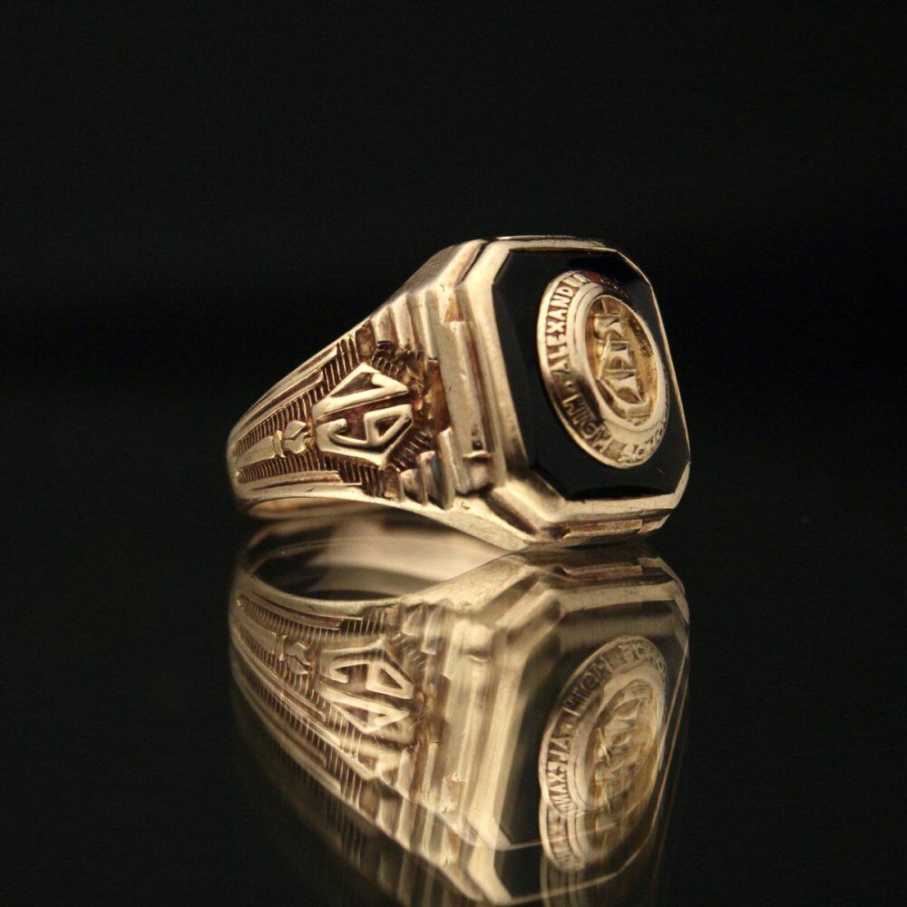 It is a vintage class ring of 1942. Square design like this age, popular and rare onyx stop. The sailboat emblem is a design that was popular in the 30s and 40s, meaning inquisitiveness, good luck, and honor. Alexander Hamilton High School is a prestigious Los Angeles. We have produced many famous musicians. Please check the condition with the SRCO.10kt gold engraved photo and purchase it after acknowledging the characteristics of vinteg.
