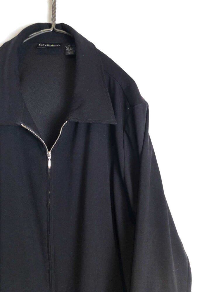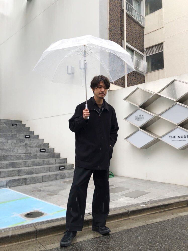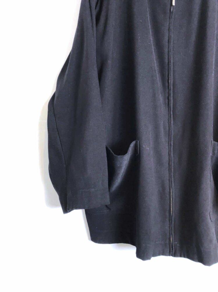 90s peach skin jacket A light coat like a shirt made of peach skin cloth with a smooth brushed feel. A black jacket with a sporty impression that is easy to match with a moderately loose silhouette.
