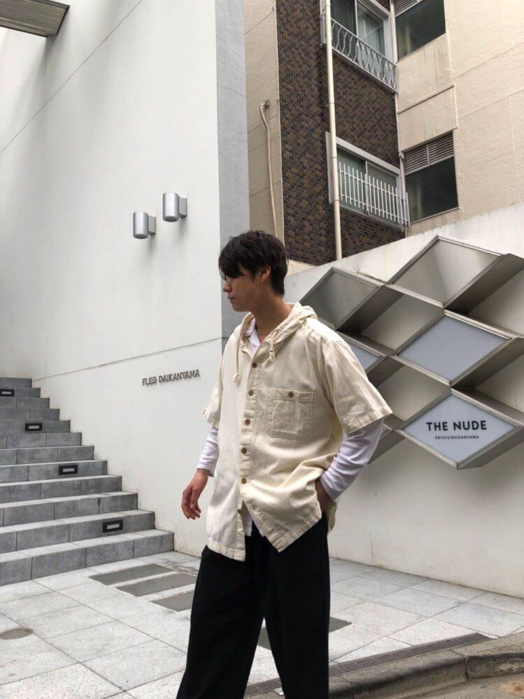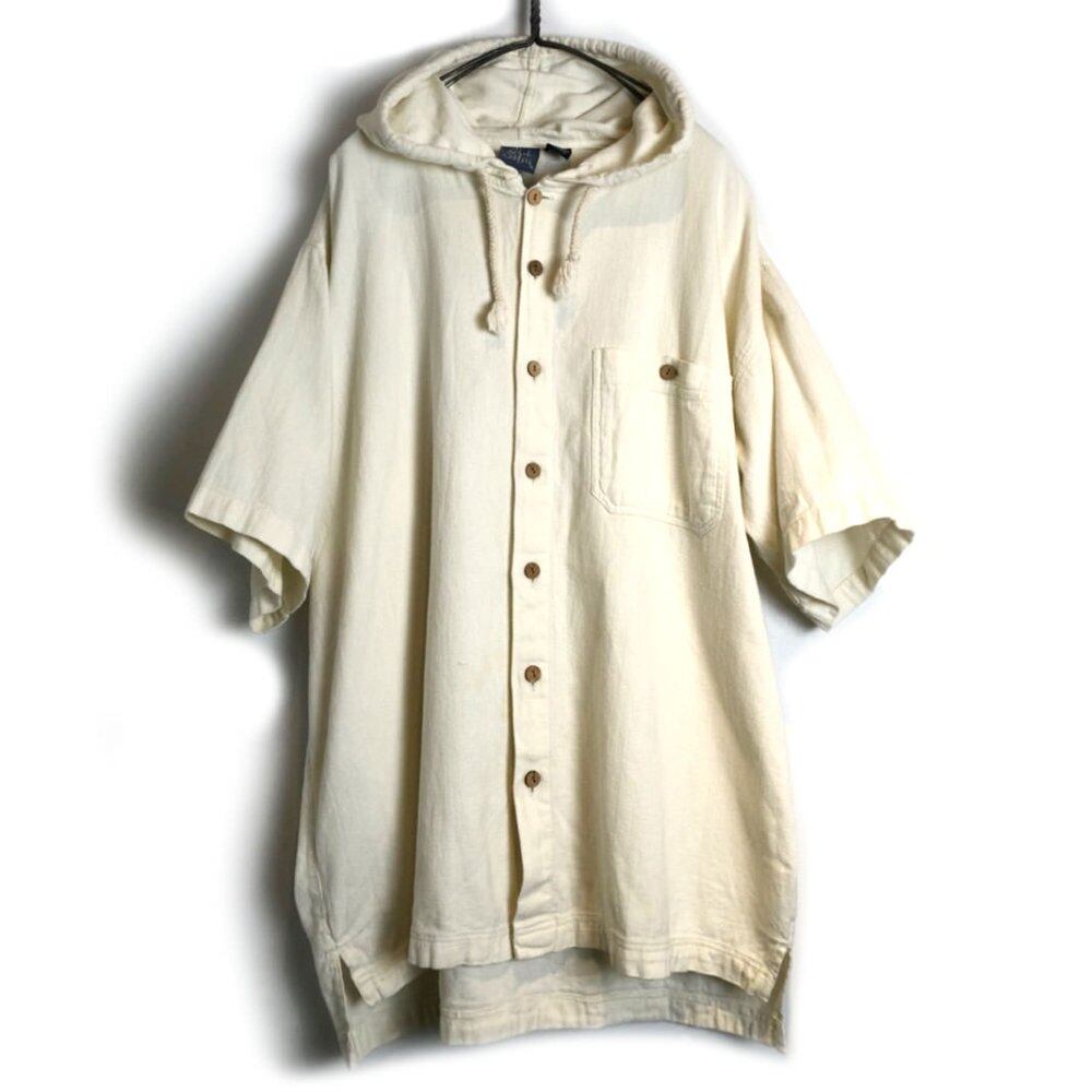 90s short-sleeved hooded shirt 100% cotton waffle fabric that feels smooth and comfortable The loose over-silhouette has a cute hood design. The off-white color with a soft impression is easy to match. item