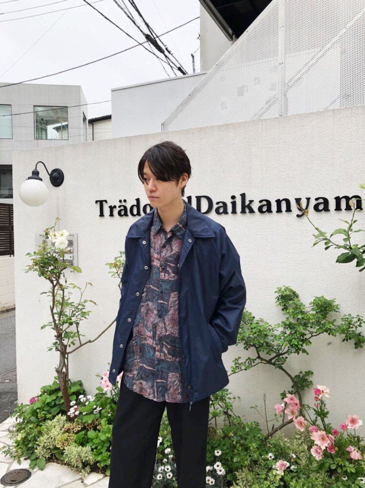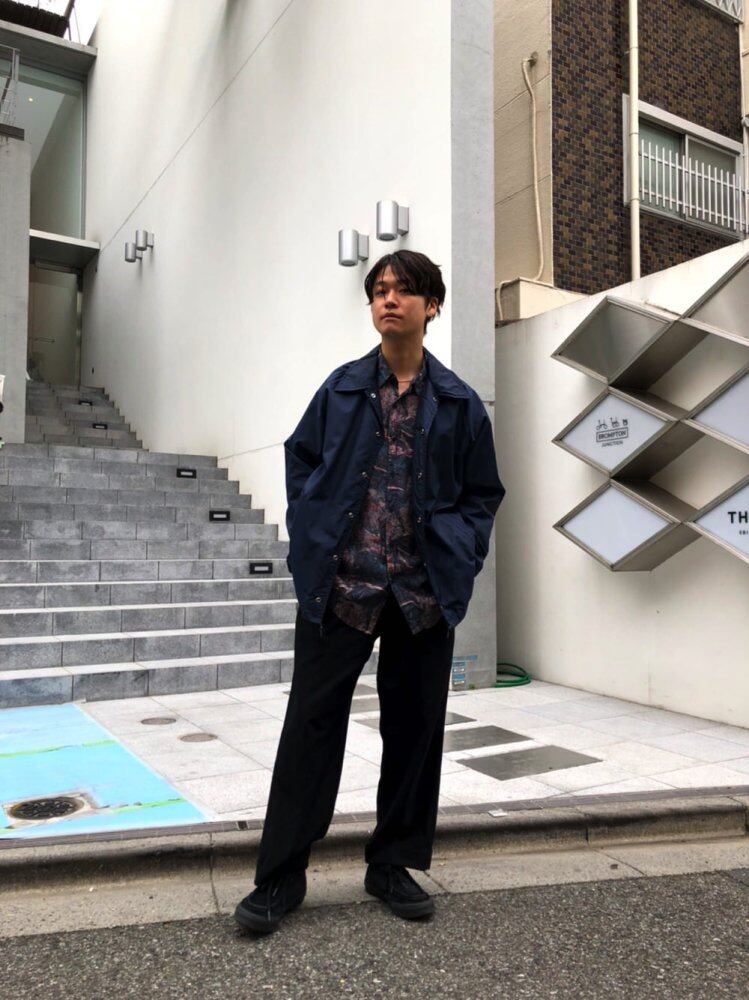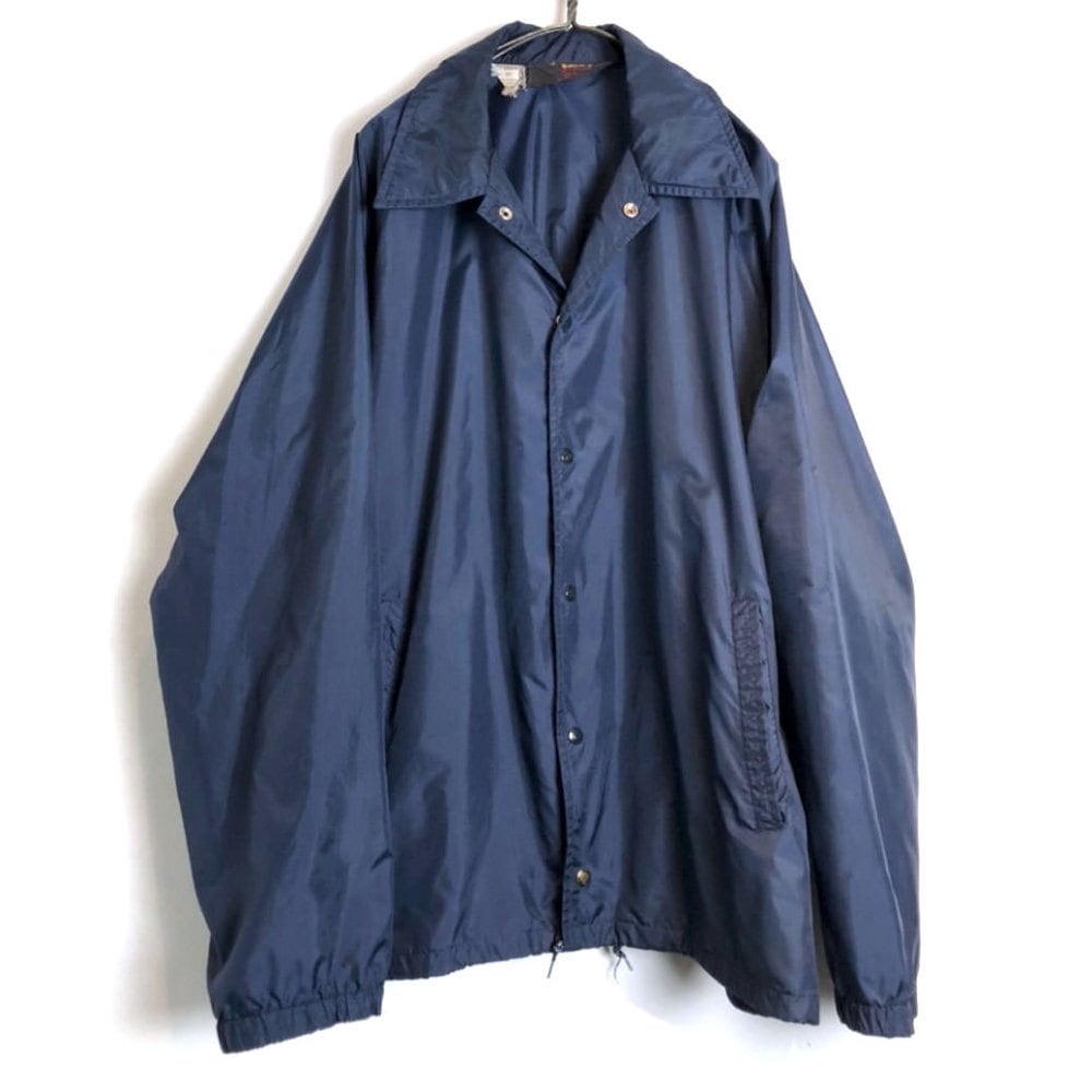 Coach jacket from the 70s Made from a light nylon material, it can be worn like a shirt. Moderately spacious size, well-balanced over-silhouette, deep navy color.