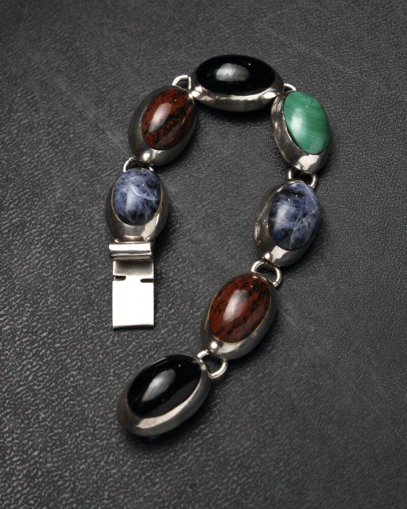 Made in Taxco, Mexico, one of the worlds leading silver mining sites, where many silver artists and craftsmen have gathered since ancient times. From the native Aztecs to the Native American jewelry-like designs that show the influence of the Southwestern United States, and the sophisticated minimalist designs of Scandinavia, this vintage has evolved uniquely in recent years. Designed like a bead bracelet with various gemstones fitted into the sterling body, it is pop and silver, giving it a dignified and casual presence. A luxurious individual who can feel the texture of ore rather than the design with a big impact one by one. Mexico-Inscription of Taxco 925. Since it is old, it may be scratched, so please check the photo and understand the characteristics of vintage before purchasing.