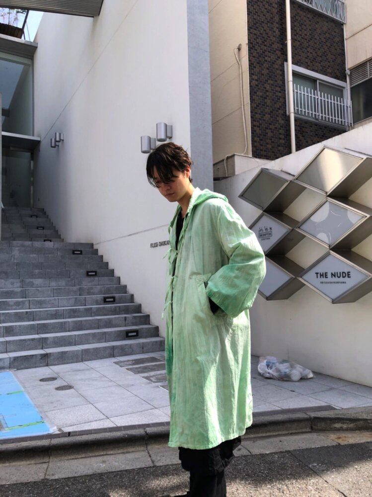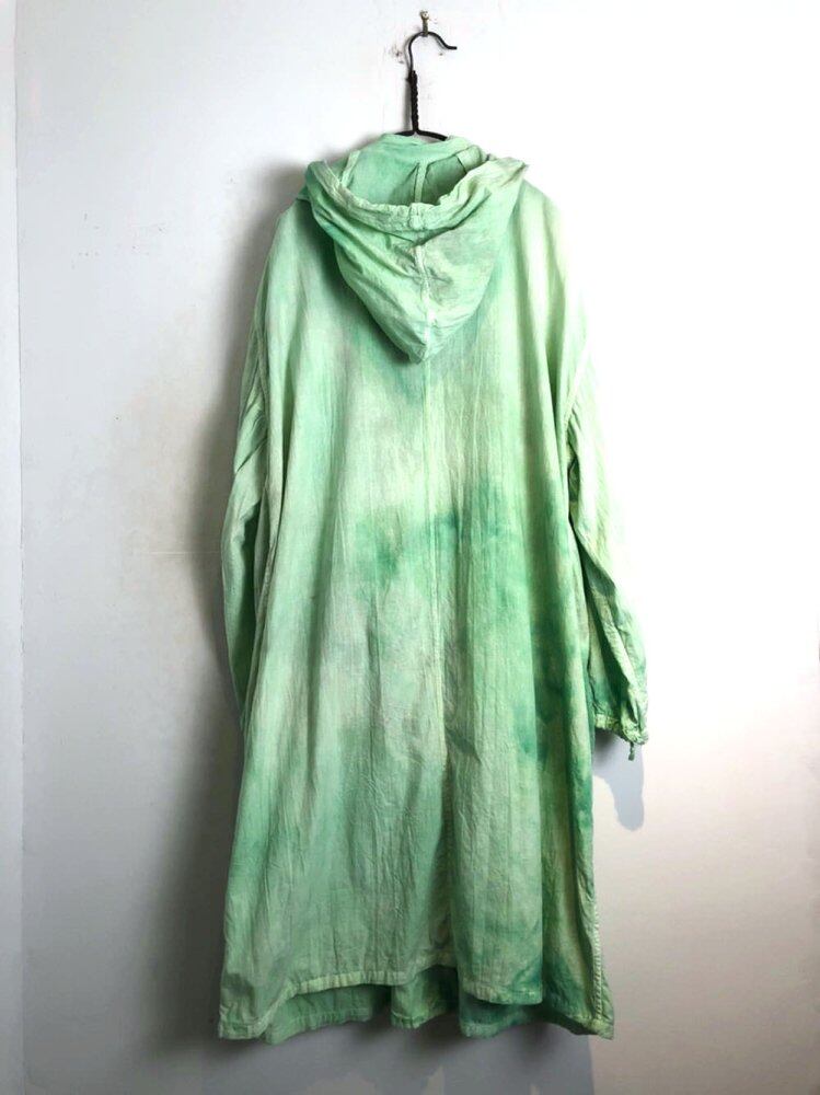 Introducing a new Nishi-dye item. This is a hand-dyed vintage snow camouflage hoodie from the Romanian army. It is a light cotton hoodie that is thin and light like a shirt. Dyed pale green layered color The refreshing air of spring is expressed in shades.