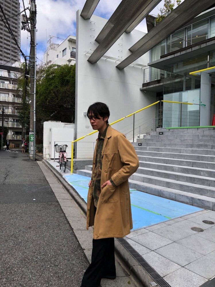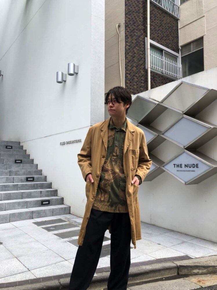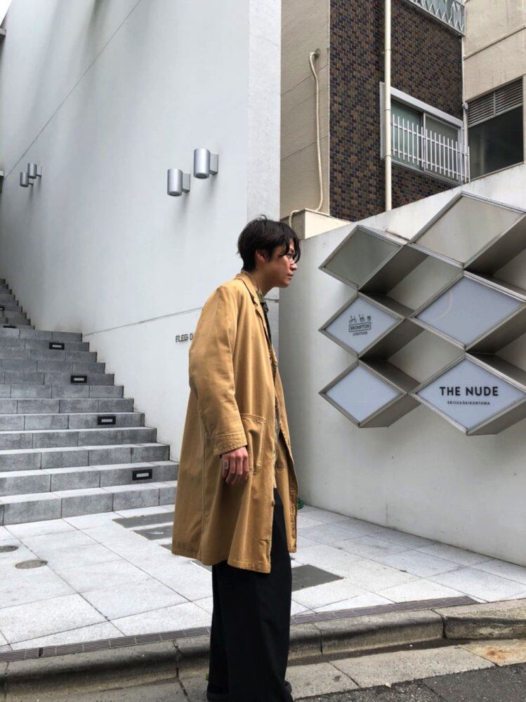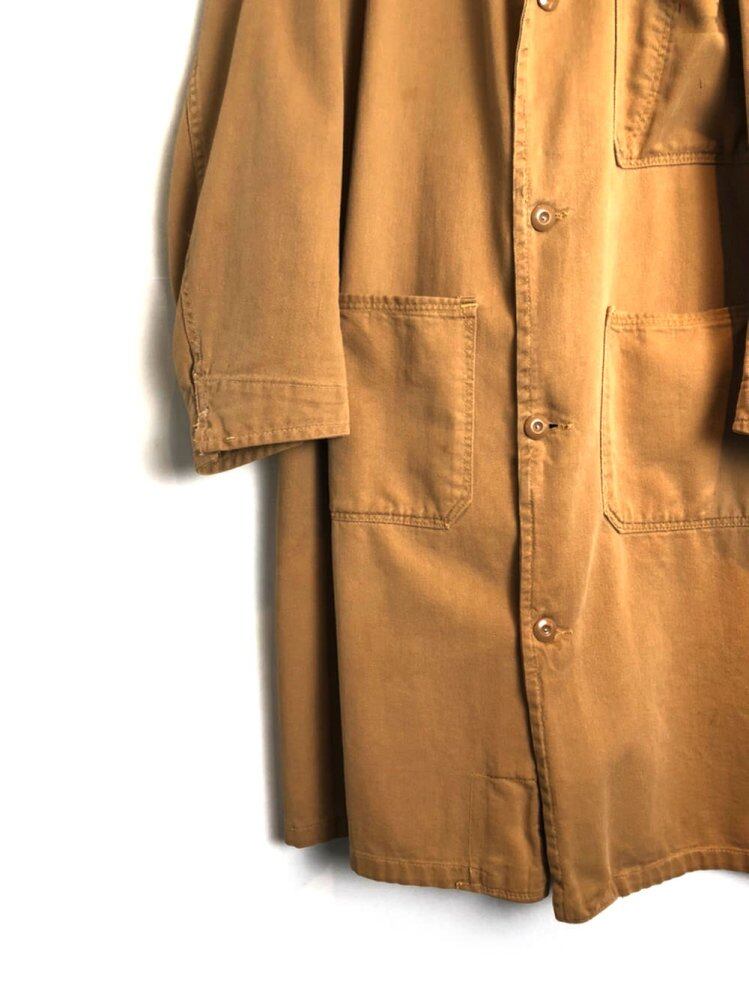 Vintage shop coat from the 1960s This is a khaki color with an earthy hue, but it also has a somewhat elegant feel. One piece of soft cotton that is crisp and soft. A feeling of size that can be worn without