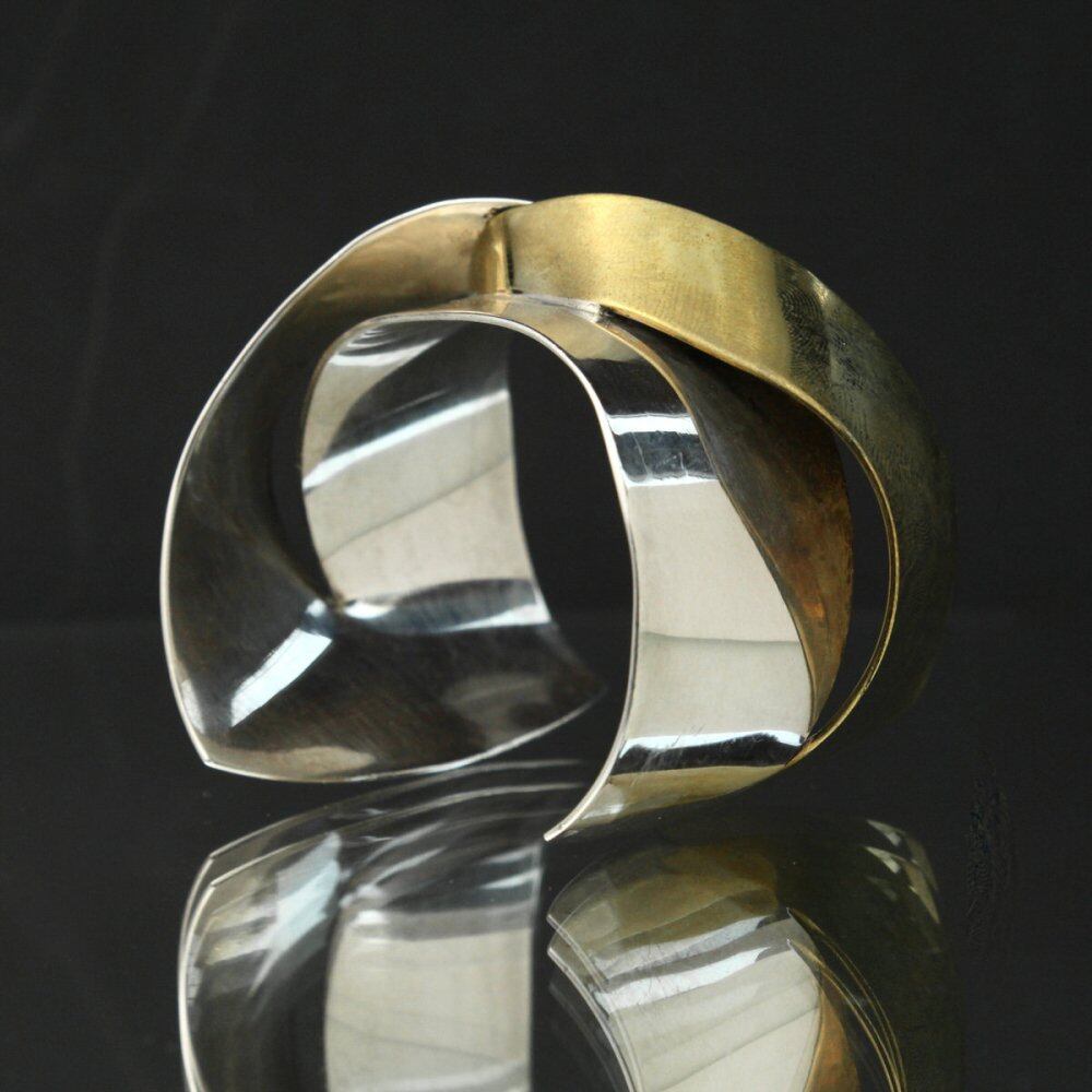 Made in Taxco, Mexico, one of the worlds leading silver mining sites, where many silver artists and craftsmen have gathered since ancient times. From the native Aztecs to the Native American jewelry-like designs that show the influence of the Southwestern United States, and the sophisticated minimalist designs of Scandinavia, this vintage has evolved uniquely in recent years. A combination design with a beautiful contrast between sterling silver and brass, and a structural structure, it is a rare individual with a profound feeling and presence while being minimal. Mexico-Inscription of Taxco 925. Since it is old, it may be scratched, so please check the photo and understand the characteristics of vintage before purchasing.