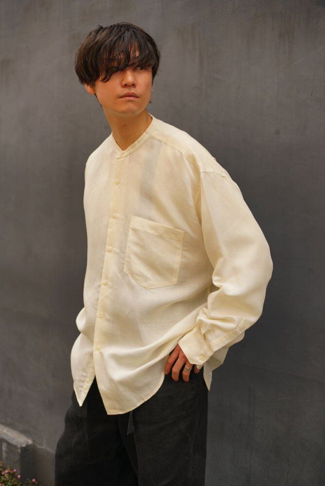 Around the 1990s, this is a band collar shirt made by REUNION.
