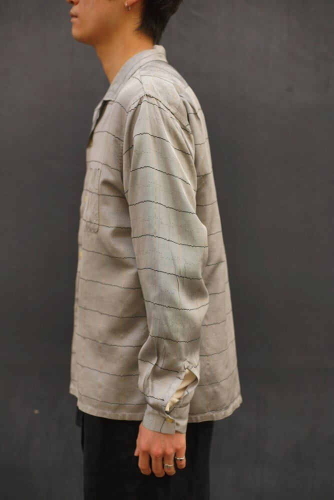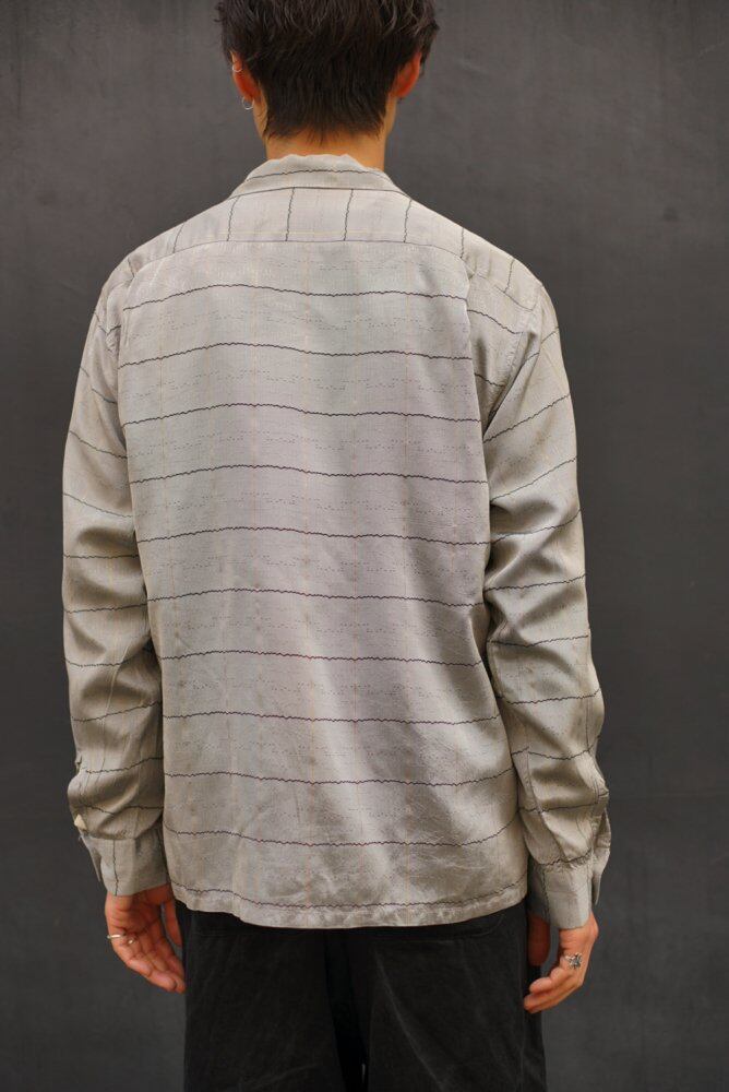 Around the 1950s, this is an open collar silk shirt made by B Cocks.