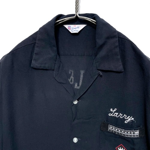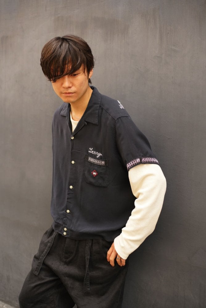 The front is embroidered unique to bowling shirts, and the score tapes applied to various parts are rare specifications.