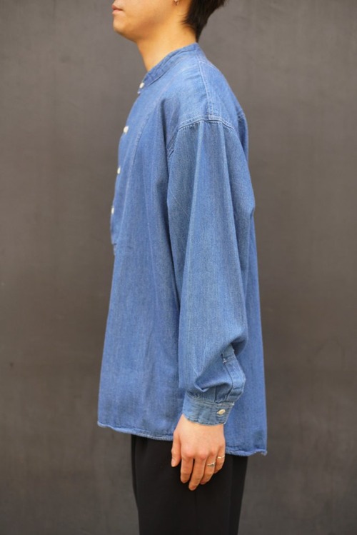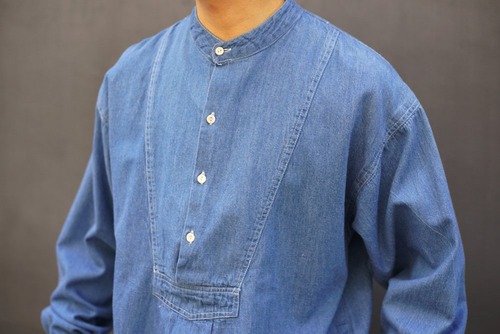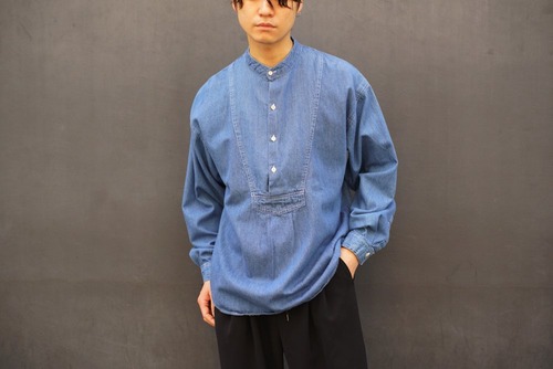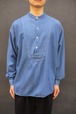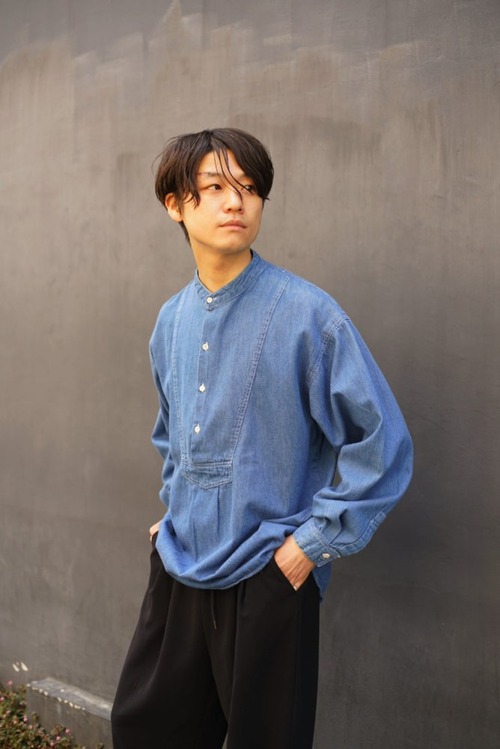 The natural texture of cotton fabric with pale indigo blue has a nice atmosphere, and the tunic design with ethnic nuances is characteristic.