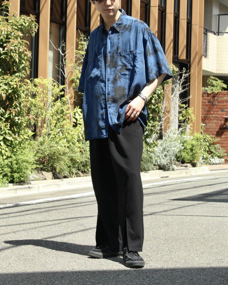 Silk shirt from the 1980s. A high-quality fabric with a unique drape feeling that is light and smooth using 100% silk fabric. It is an Italian designer brand with a deep navy blue color and a black pattern like tie-dye, giving it a deeper look. L size and relaxed silhouette. It is in good condition as a whole subjectively. Since it is an old product, it rarely deteriorates over time. Please check the photo and purchase after acknowledging the characteristics of vintage.