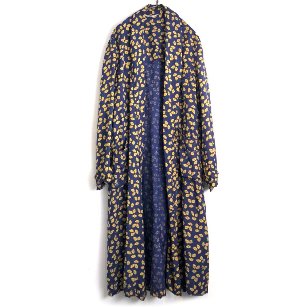 A rare pattern with a yellow tint in the vintage gown navy color of the 1960s, it looks like a leopard pattern at first glance.