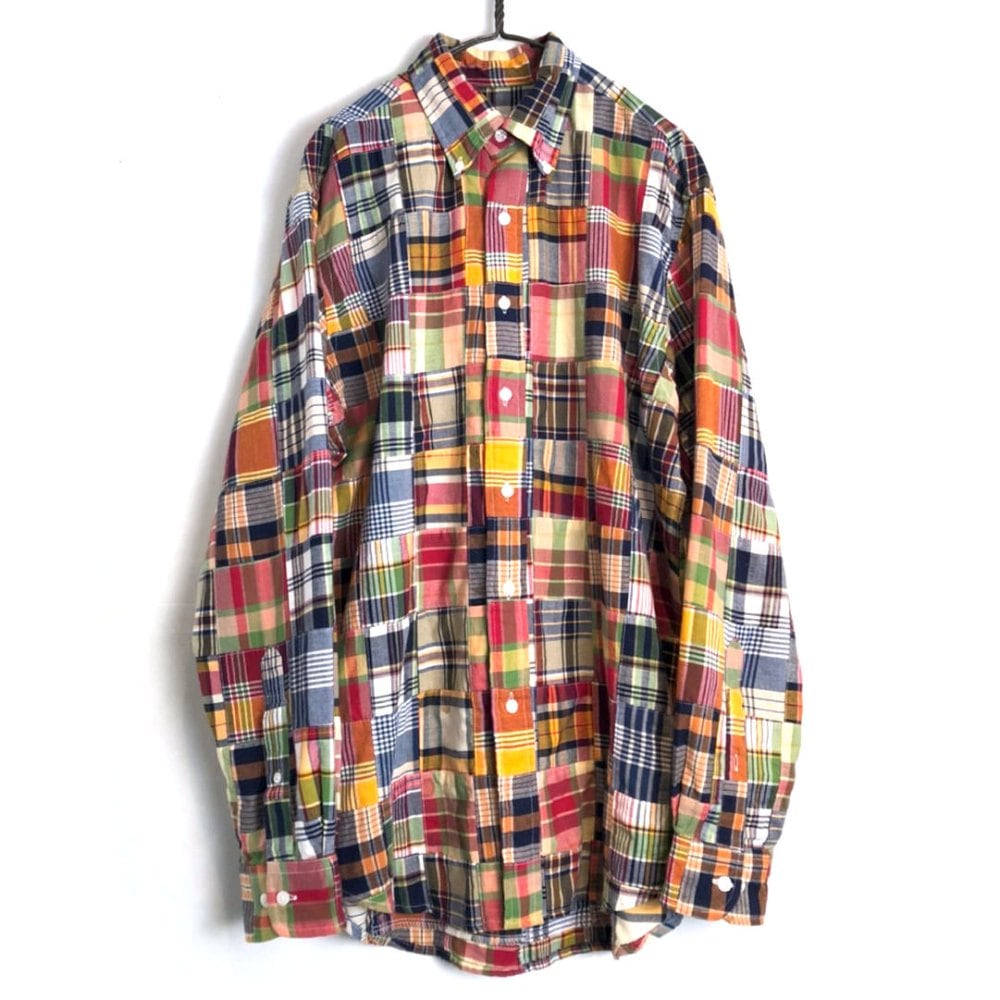 90s Brooks Brothers patchwork shirt A combination of crazy patchwork with colorful check patterns and checks with refreshing spring colors. Cotton material with a nice texture and a smooth feel.