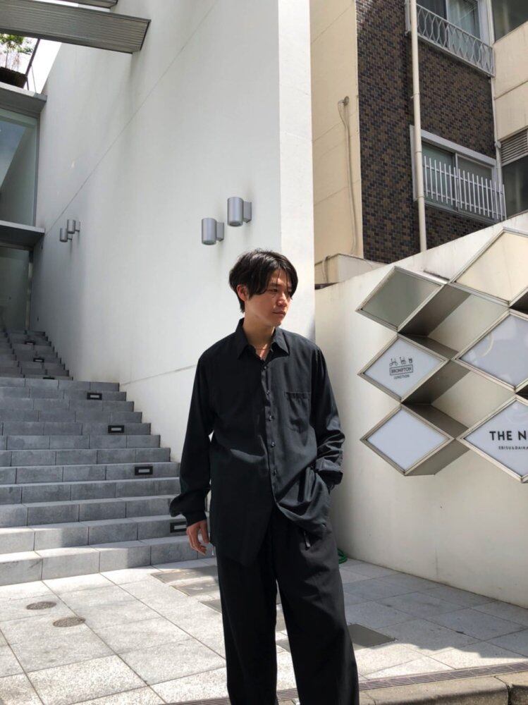 90s rayon shirt The light and smooth fabric that is unique to rayon material is a comfortable piece to wear. A good silhouette sizing with a moderate amount of space. A black shirt that is easy to match with a simple design.
