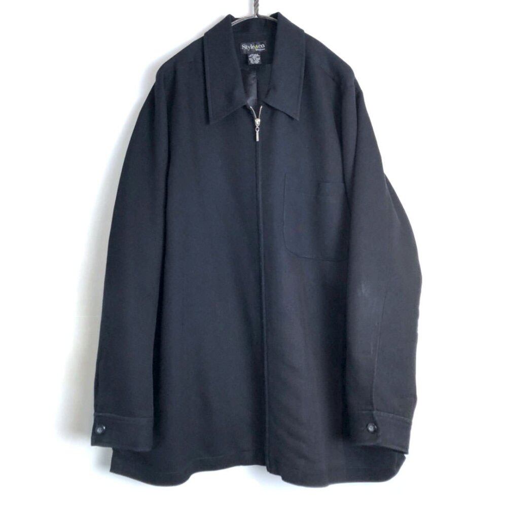 90s shirt jacket A sporty and simple drizzler type design that feels like a shirt made of light and smooth rayon and polyester fabric. It is a black jacket with a moderately loose feeling and a good silhouette.