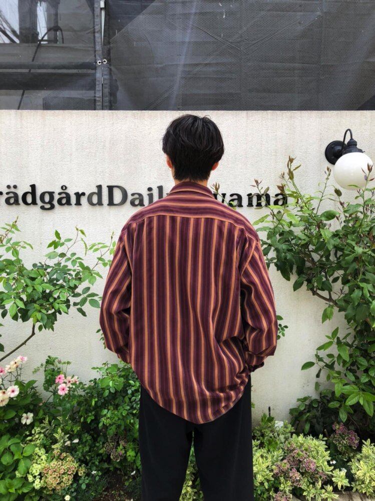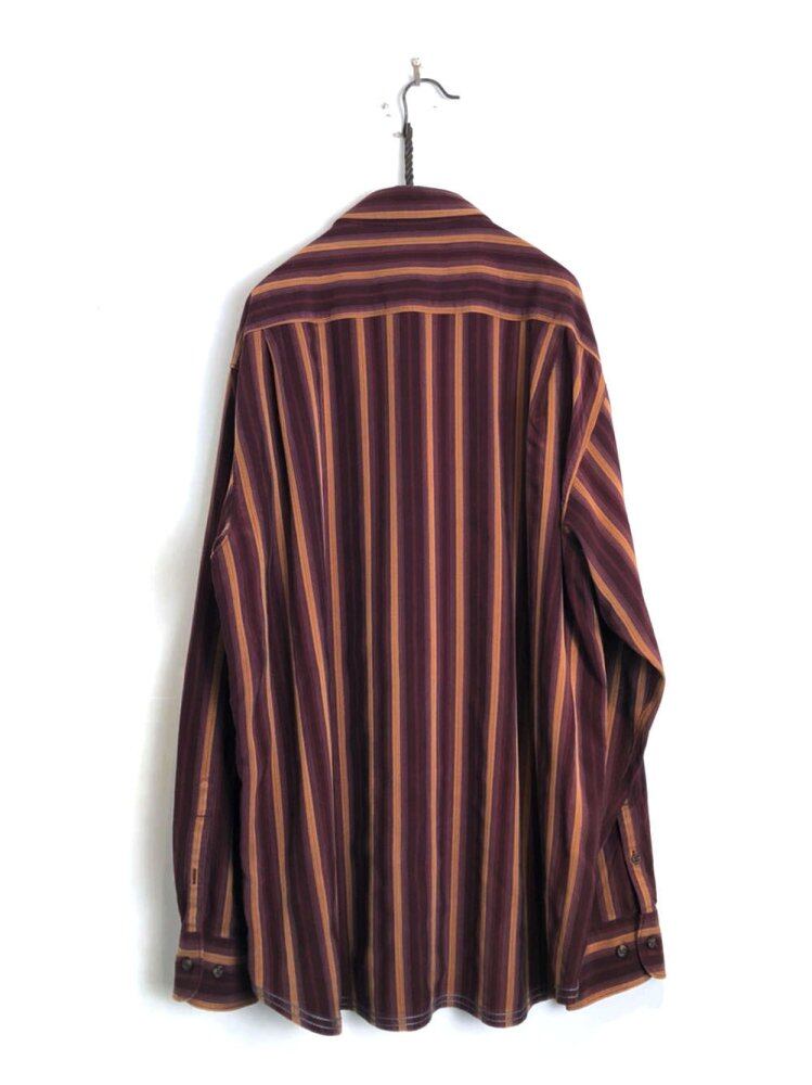 90s silk shirt The tasteful Bordeaux x mustard stripe pattern has an adult-like atmosphere. The smooth texture unique to silk is also a luxurious item. A relaxed silhouette with a relaxed size.
