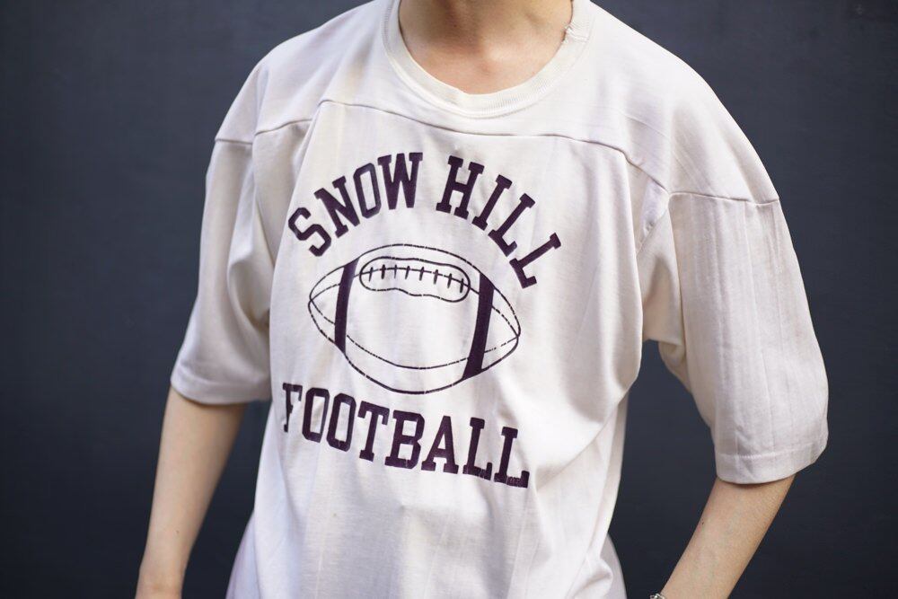 The silky touch of cotton nylon and the texture of the thick and unique jersey fabric are comfortable, and the retro rubber print is impressive.