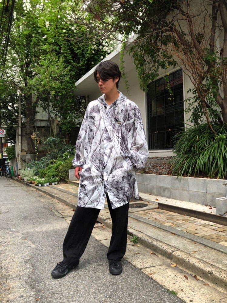 A thin and light fabric made of 100% polyester material. A silhouette that you can wear comfortably for a light haori in spring.