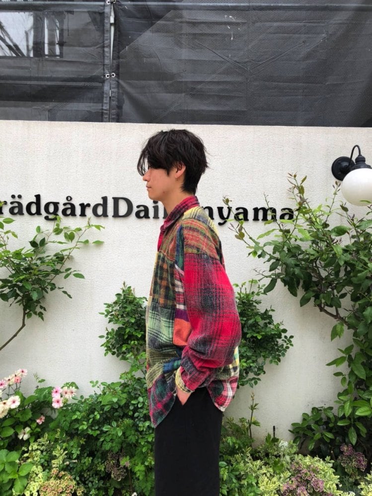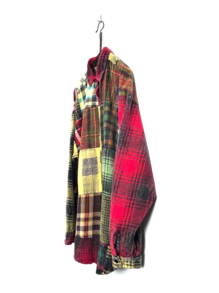90s cotton flannel shirt A crazy patchwork with colorful plaids and a playful feeling unique to old clothes. 100% cotton flannel fabric with a soft and smooth texture. One piece of well-balanced over-silhouette with a relaxed size.