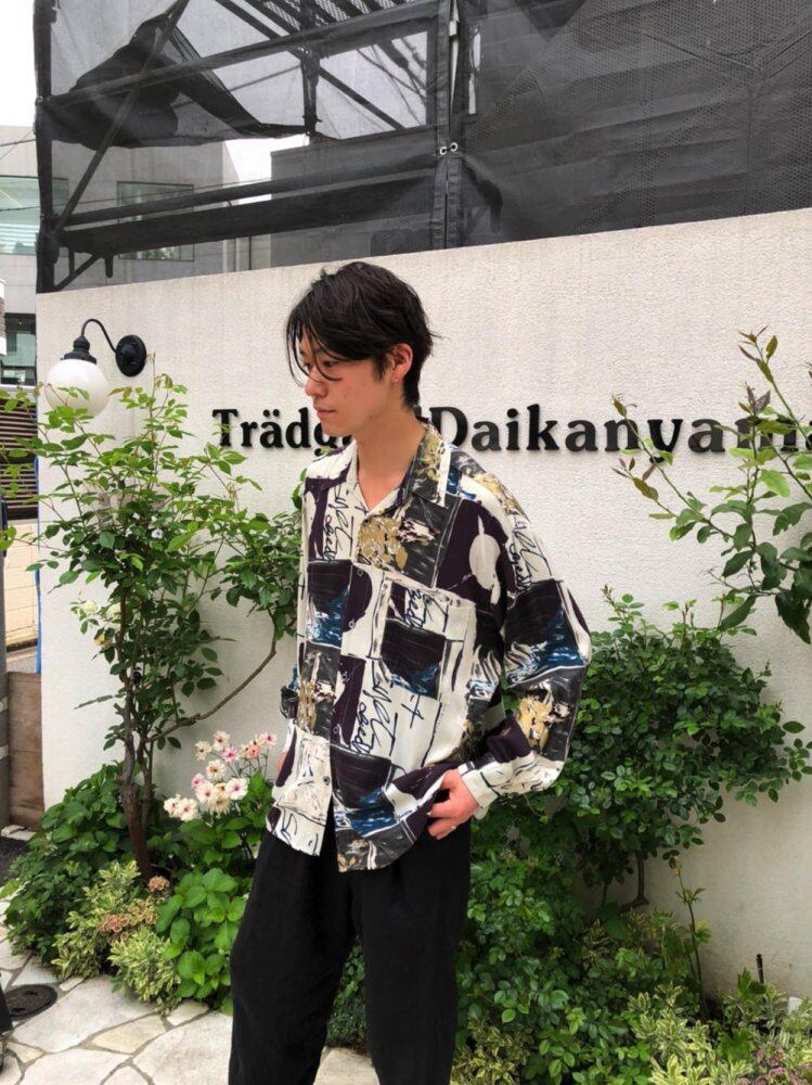 90s rayon shirt Off beige with a cool artistic pattern based on purple color is a very nice one.