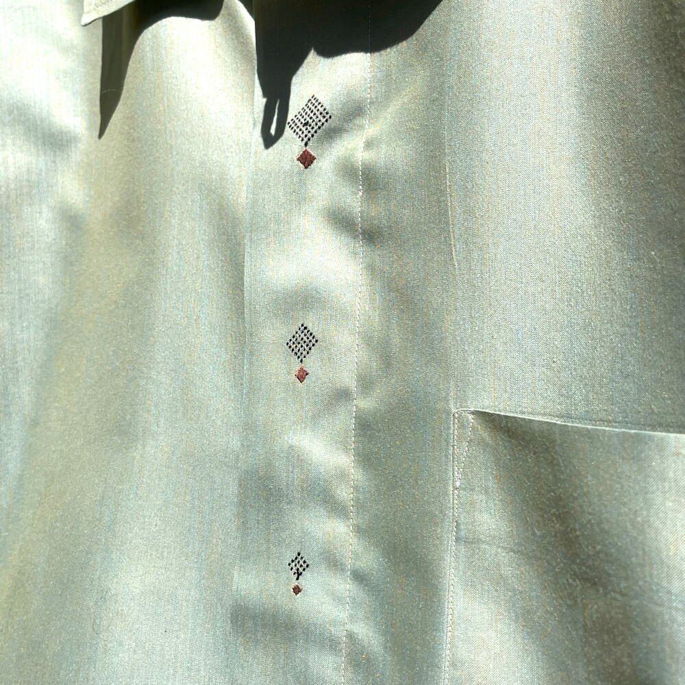 The smooth cotton / polyester fabric is used, and it has a soft texture that gently fits your body.<BR> Deep coloring with yellow threads driven into chambray-like wefts, and a luxurious look that changes the appearance depending on the amount of light.