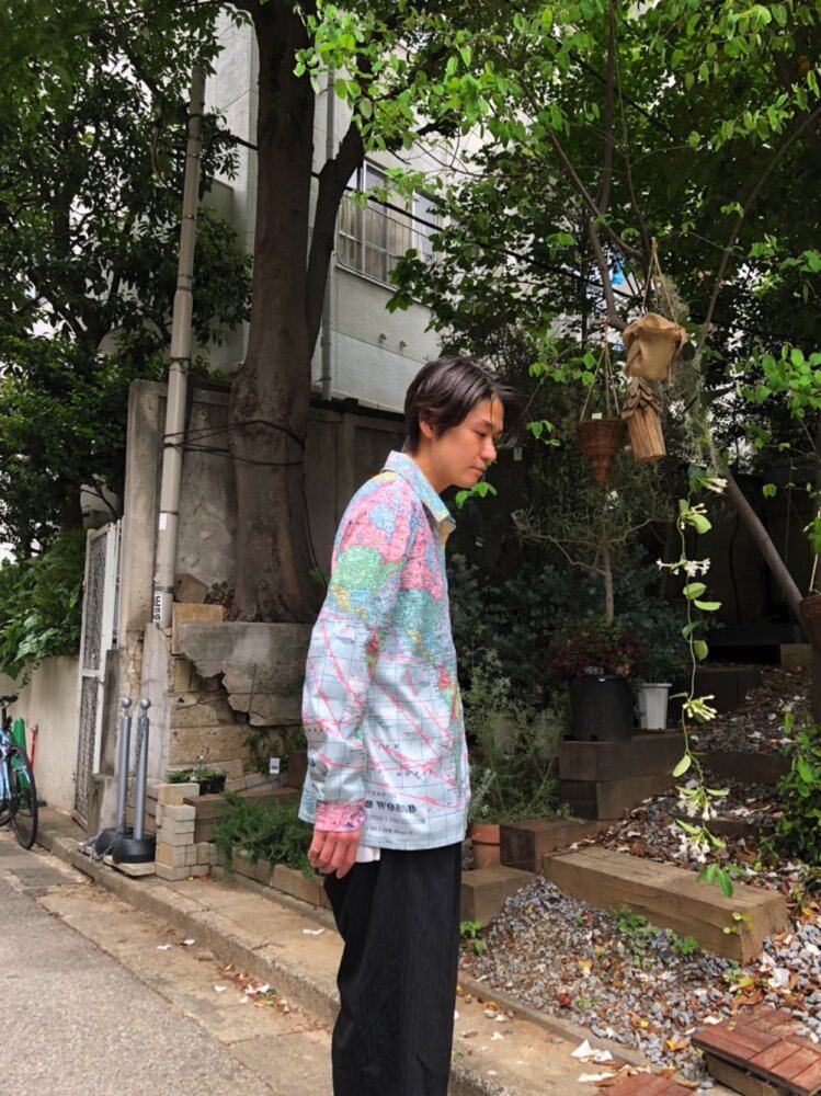 80s long sleeve shirt The catchy world map pattern known for vintage paper blouson etc. is an interesting first place