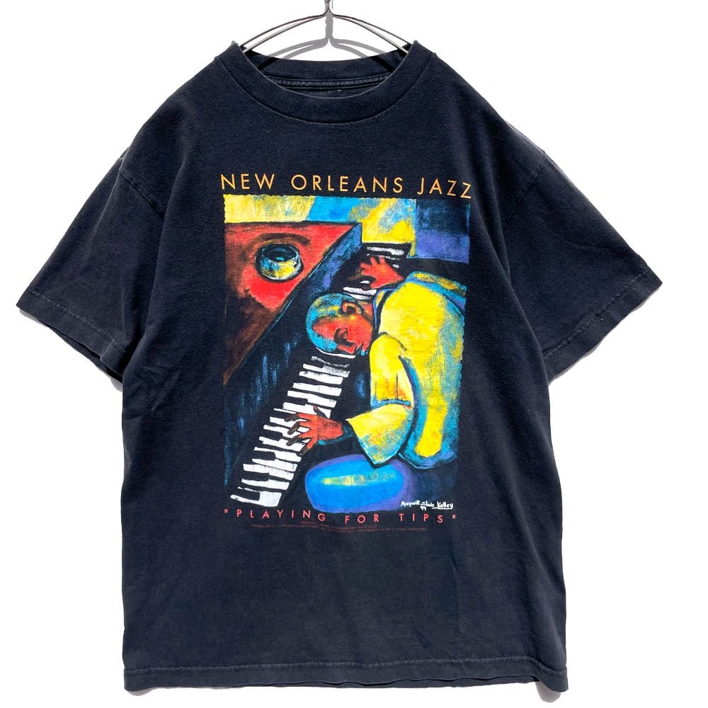 Made in 1994, this is a T-shirt by Margaret Slade Kelley, a writer who draws the black music scene in New Orleans.<BR> Artwork with an impressive unique touch depicting a jazz pianist.