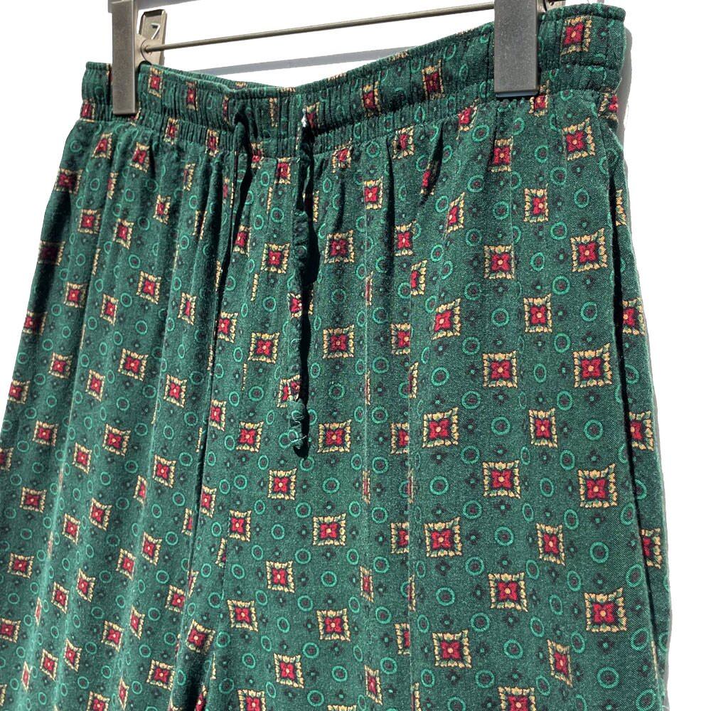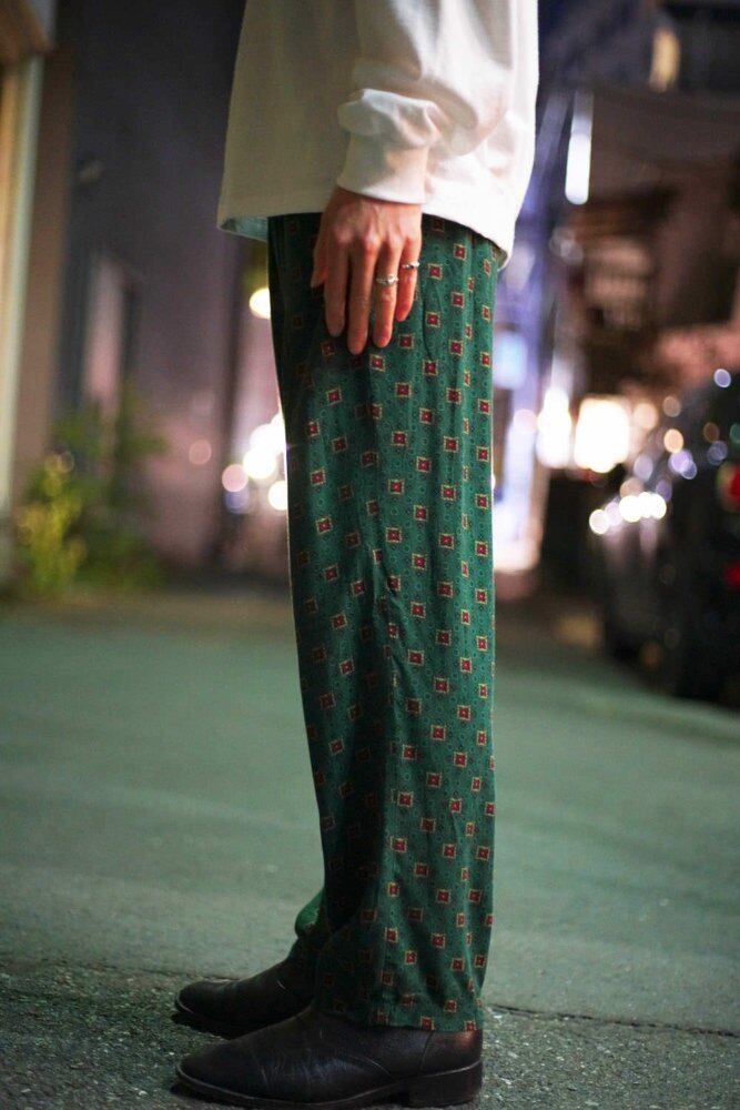 Around the 1980s, these ethnic pattern rayon easy pants have a smooth texture.