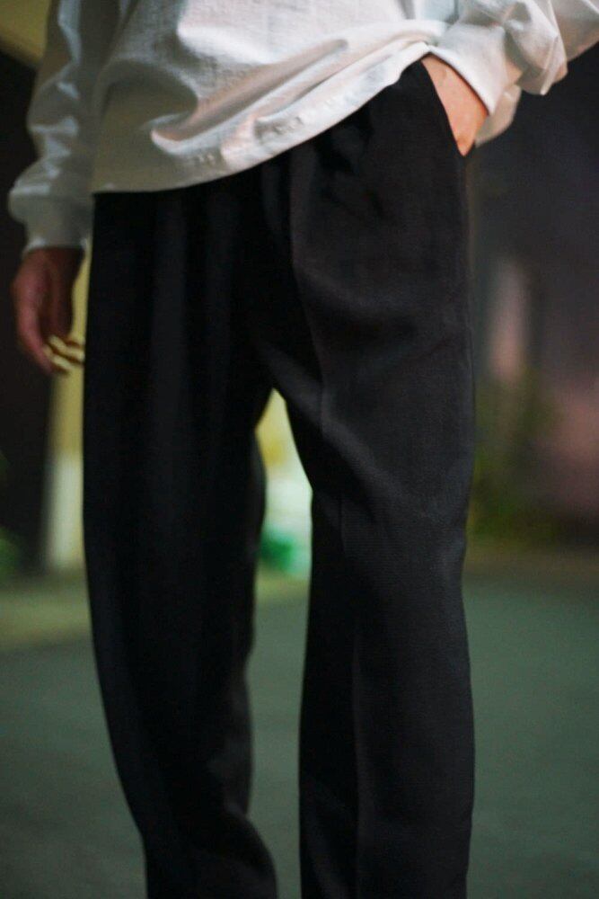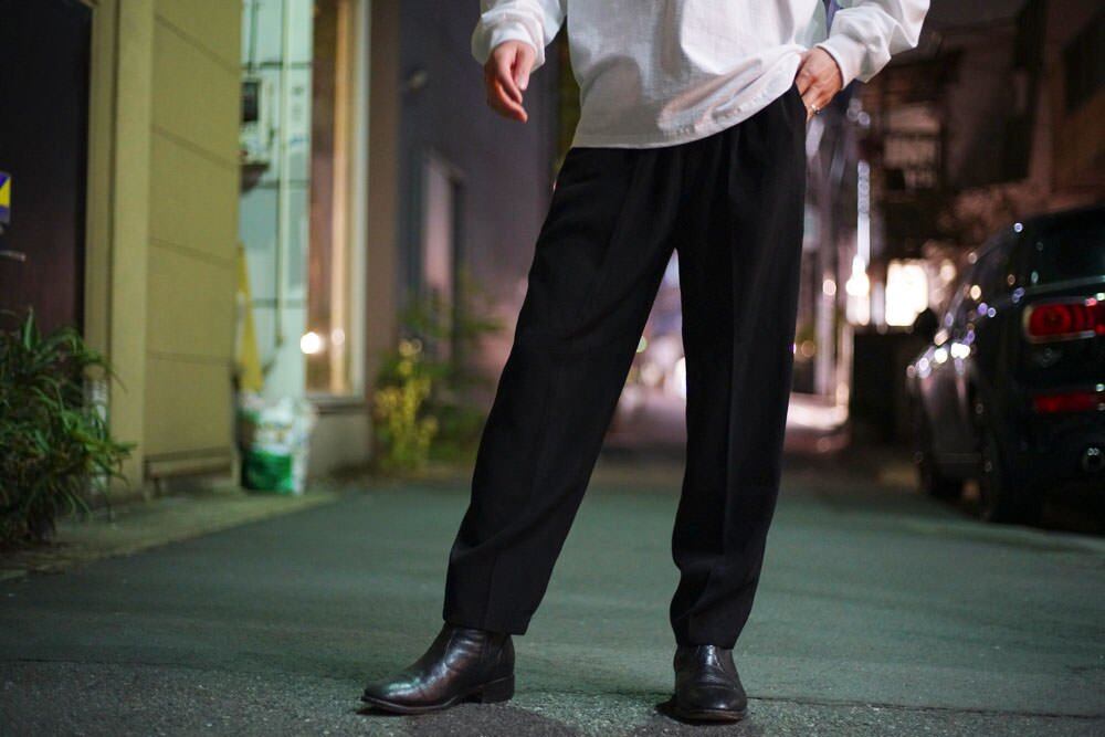 The vintage-like Kasuri pattern is applied to the whole, and the dressy details of the center press specification enhance the atmosphere while being easy pants.