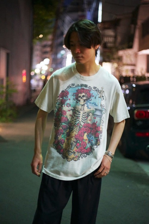 I see individuals printed on the tie-dye body, but this is the first one printed on a very rare white body.