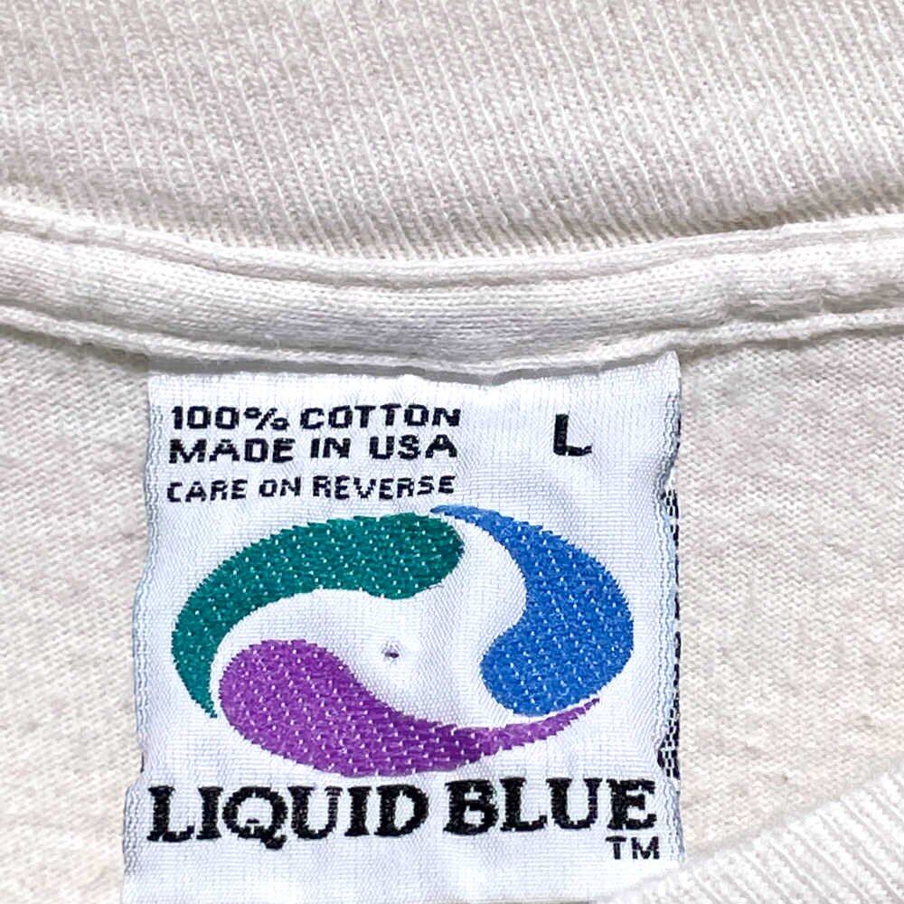 1995 GDM INK. Copyrighted, USA made LIQUID BLUE body, sleeves and hem with single stitch.