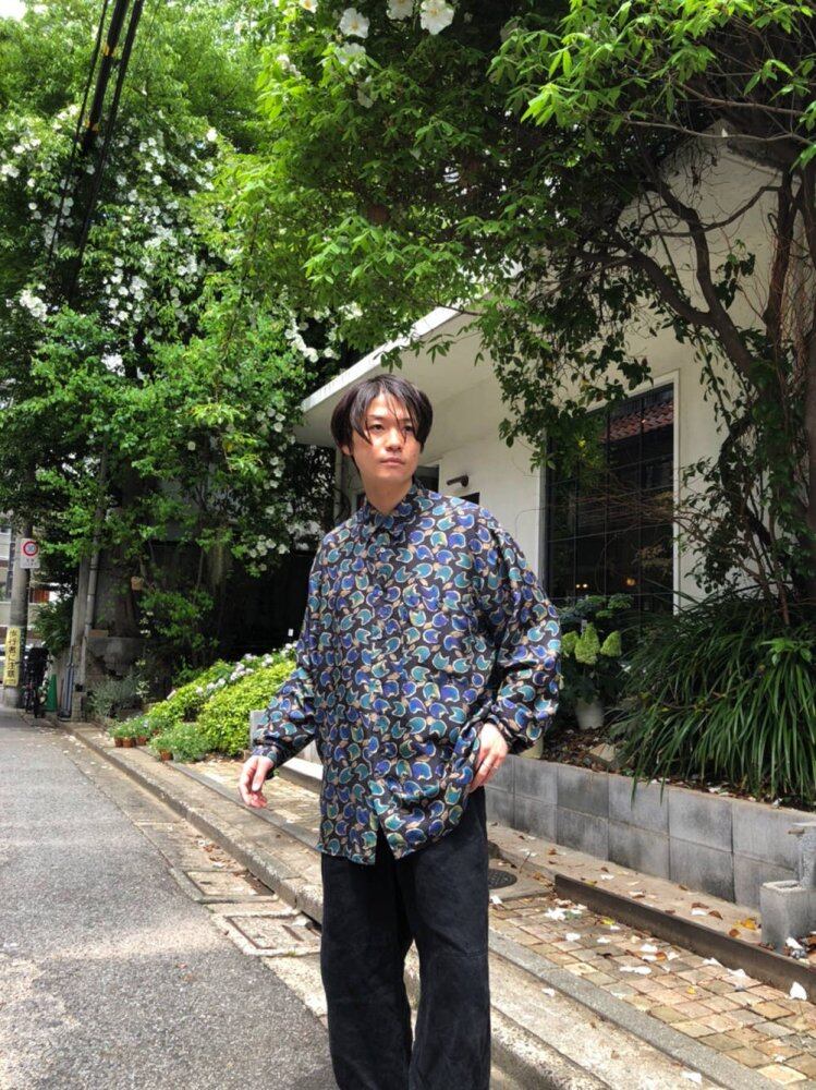 90s silk shirt A cool blue x green color scheme based on black and an art pattern like a leaf pattern is a nice first place.