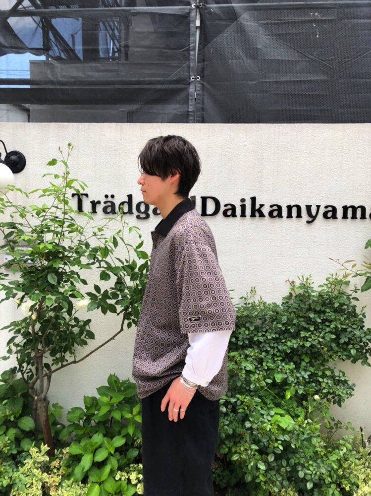 90s short sleeve polo shirt Black, beige and purple with a nice batik pattern.