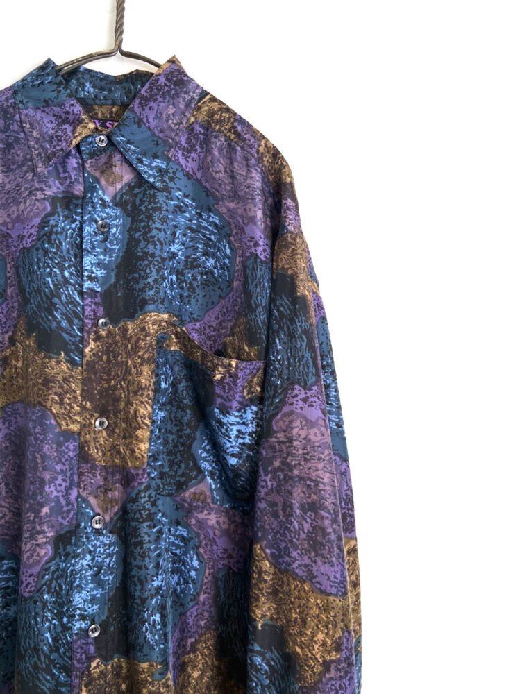 Vintage silk shirt of the 90s The dark art pattern of blue x purple is one of the images like Van Goghs painting. The fabric quality is 100% silk. Sheet